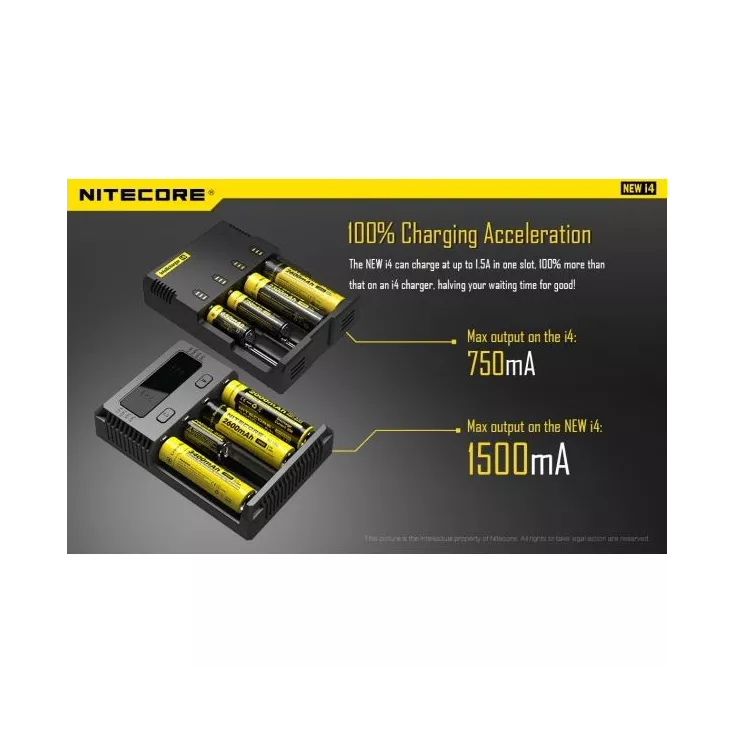 100% Charging acceleration means the Nitecore NEW i4 can charge at up to 1500mA current in one slot.