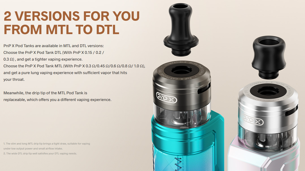 Experience incredible MTL vaping with the Voopoo PnP X Tank MTL. This 2ml tank is tailored for flavour, featuring a specialized MTL drip tip and compatibility with PnP X coils.